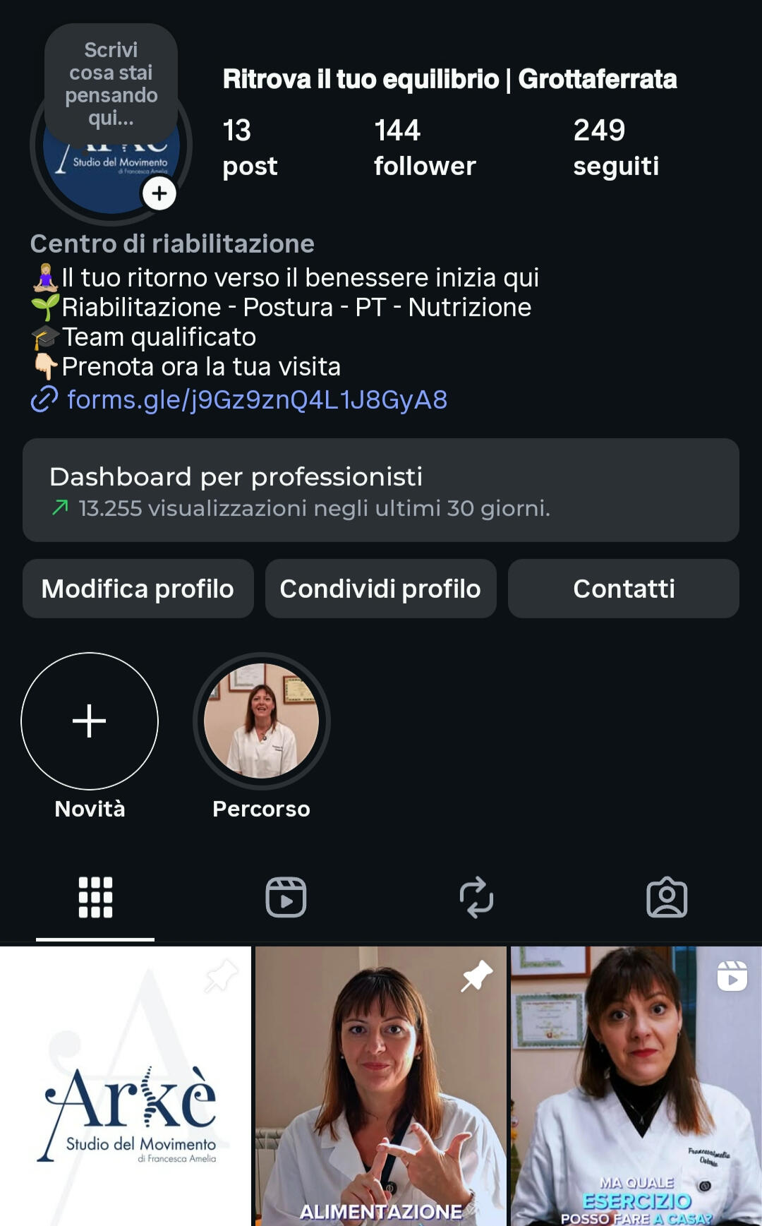 Arkè nasce con l’obiettivo di diventare il punto di riferimento a Grottaferrata per la cultura del benessere e della prevenzione, ispirando le persone a prendersi cura di sé in modo sostenibile.La missione si fonda sul ritorno all'essenziale, considerando il movimento non come una prestazione sportiva, ma come il principio cardine della qualità della vita.Attraverso percorsi personalizzati, lo studio mira a restituire autonomia e fiducia a chi ha perso il piacere di muoversi, promuovendo un’idea di salute che parte dall'ascolto profondo della storia di ogni individuo.