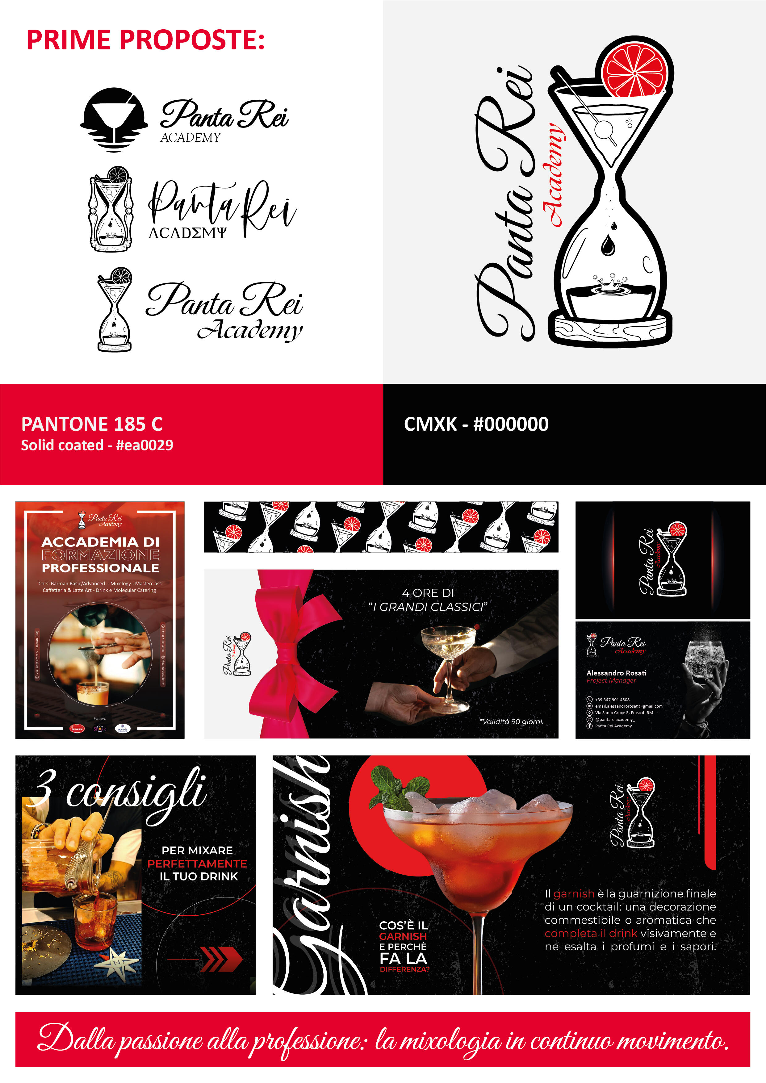 La progettazione dell'identità di marca è stata guidata dalla necessità di rendere immediato il concetto di accademia per bartender.L'obiettivo primario è stato il posizionamento dell'accademia come l'istituzione formativa di riferimento per i futuri bartender dei Castelli Romani, elevando lo standard qualitativo della professione.Parallelamente, la strategia visiva è stata studiata per attrarre il pubblico verso l'esperienza quotidiana del locale e per consolidare Panta Rei come la destinazione per eventi privati.